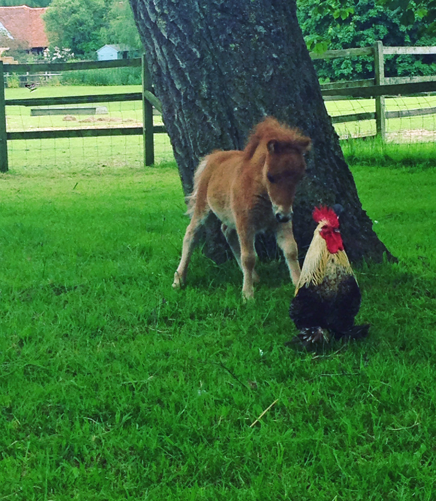 Colin the cockerel always joins us for our coffee break, but on this occasion Tickled Pink has other ideas.